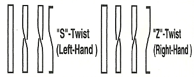 | Twist | “S’ (Left-hand Twist) or “Z” (Right-Hand Twist) as shown below. Therefore, Coriatex Tapes must never be ordered wider than groove width, or shorter than the tape length which corresponds to centre position of take-up roller. Coriatex Tapes, however, are not subject to stretch or loss in width in operation after having been installed at an initial ![]() |